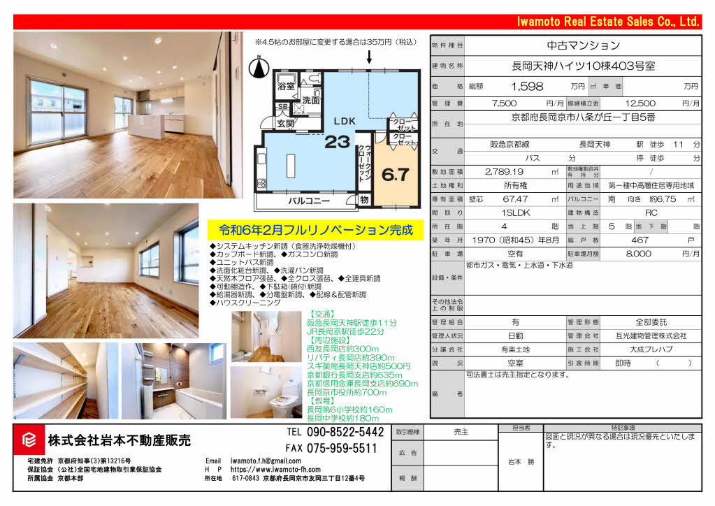 長岡天神ハイツ10棟403号室☆令和6年2月フルリノベーション完成!!【売主】